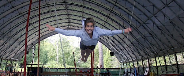 At the centre of camp stands our incredibly unique state-of the-art 9,000 square foot open-sided Gymnastics and Trampoline Centre, our Dining Hall, Arts & Crafts building, Program Office, Campfire Circle and Tuck Shop.